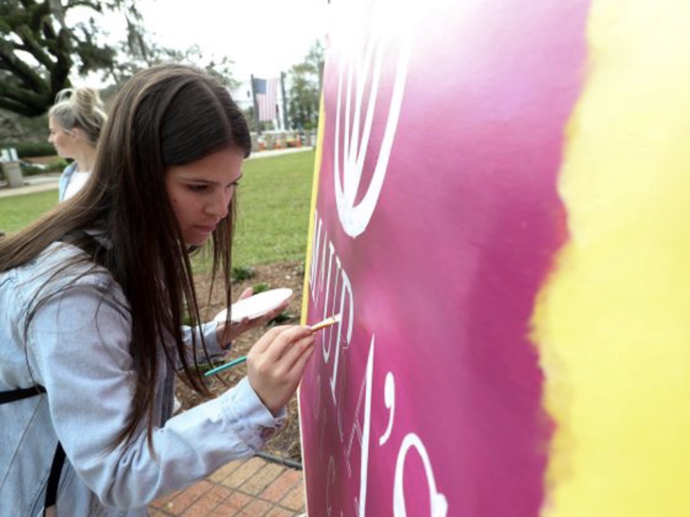 Julia Schifino, former roommate of Maura Binkley, helps paint a mural for Maura’s Voice to celebrate the launch of the foundation at the Florida Historic Capitol in Tallahassee, Florida on March 4, 2019. — Photo: Tori Schneider/The Tallahassee Democrat